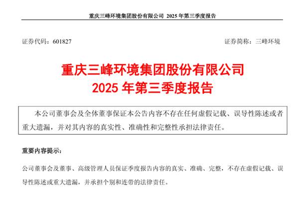 三峰环境:2025年前三季度净利润11.04亿元 同比增长9.31%