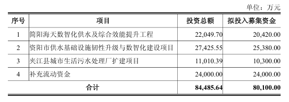 海天水务集团股份公司(简称:海天股份,下称“海天水务”)近日发布《向不特定对象发行可转换公司债券预案》,拟发行A股普通股股票的可转换公司债券,每张面值为100元,募集资金总额不超过80,100.00万元(含本数),期限为自发行之日起六年。募集资金拟用于以下项目: