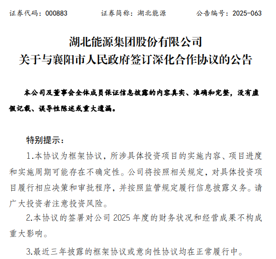 “十五五”计划投资267亿!湖北能源与襄阳市人民政府深化能源项目合作!