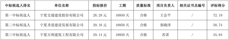 九、宁夏交通建设股份有限公司、宁夏圣道建设发展有限公司、宁夏亘利建筑工程有限公司特许经营期限:30年,其中建设期1年,运营期为29年。