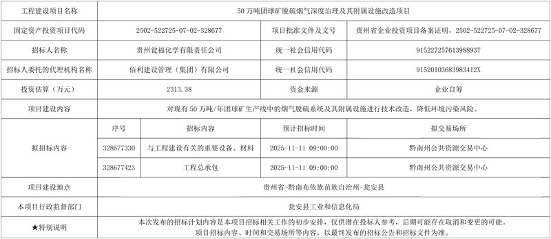 2313万!50万吨团球矿脱硫烟气深度治理及其附属设施改造项目将招标
