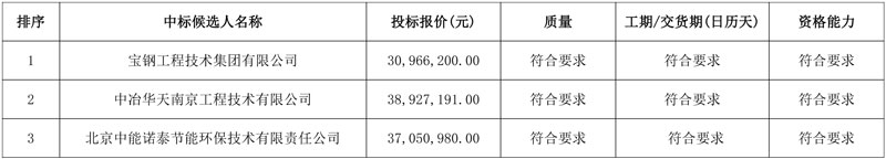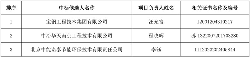 [热轧厂2250加热炉烟气净化提标改造项目EPC标段]中标候选人公示