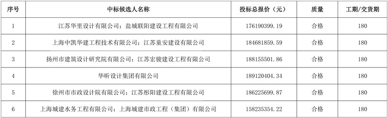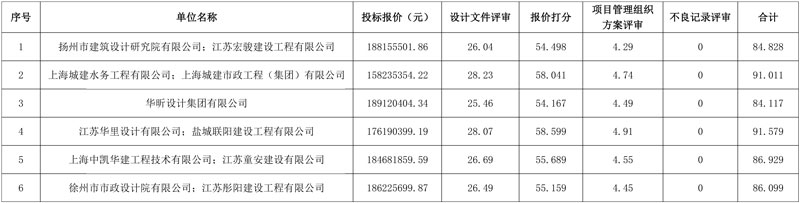 根据工程招标投标的有关法律、法规、规章和该工程招标文件的规定,射阳县农业水利投资开发集团有限公司的射阳县住房和城乡建设局2025年盐城市射阳城区黑臭水体治理提升工程总承包项目的评标工作已经结束,评标结果已经确定。本项目采用综合评估法的评标办法,现将评标结果公示如下: