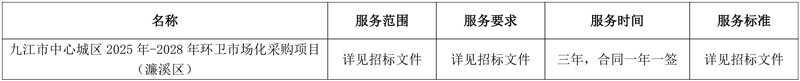二、项目名称:九江市中心城区2025年-2028年环卫市场化采购项目(濂溪区)(第二次)