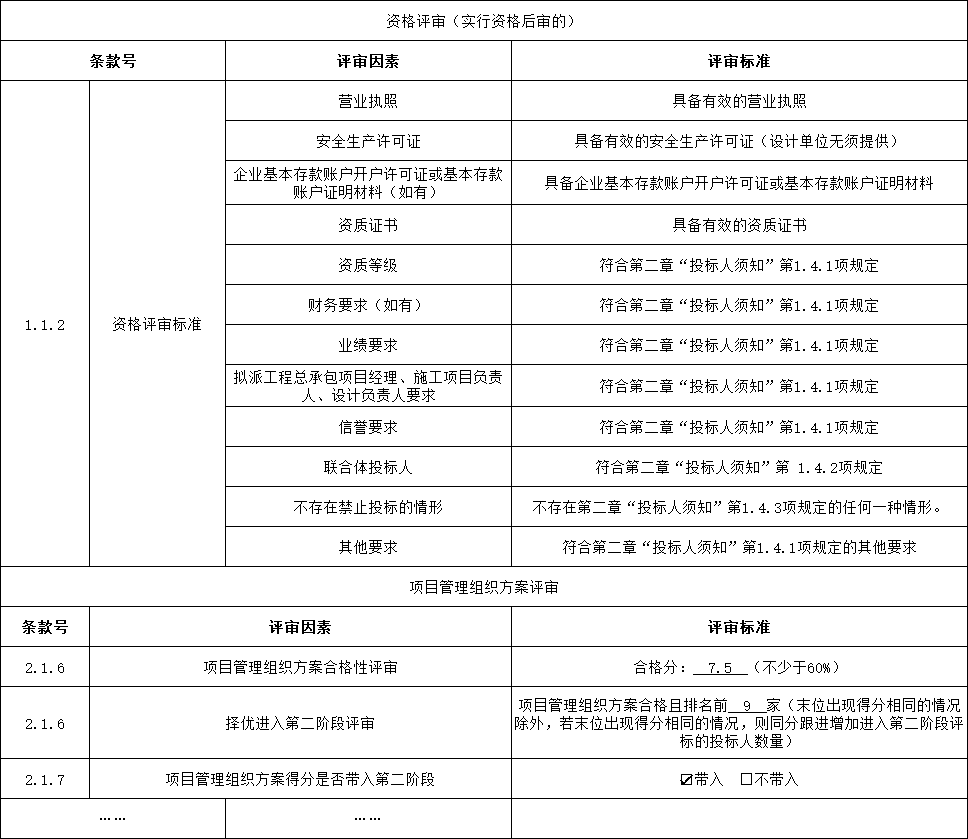 第二阶段:评标委员会按照招标文件规定的评标方法对商务技术标进行评审。项目管理组织方案得分带入第二阶段。