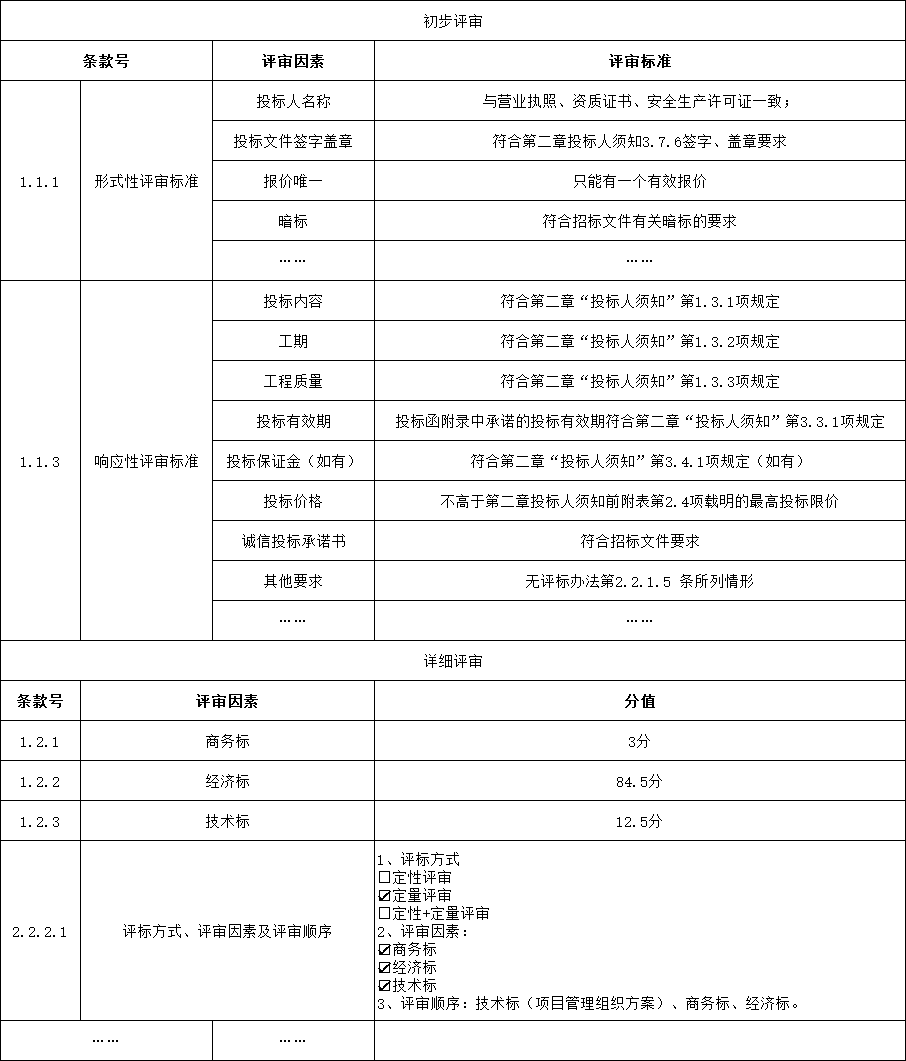 评标办法前附表