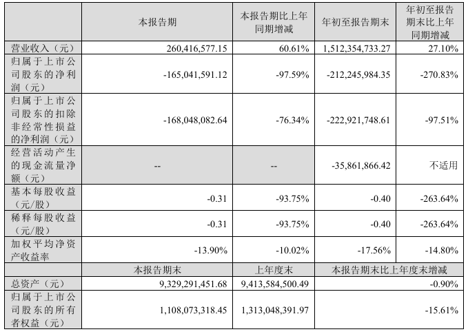 截至三季度末,博世科总资产93.29亿元,较上年度末下降0.9%;归母净资产为11.08亿元,较上年度末下降15.6%。