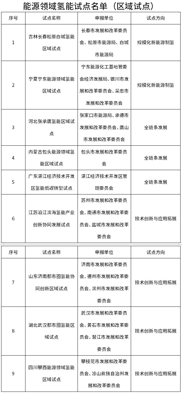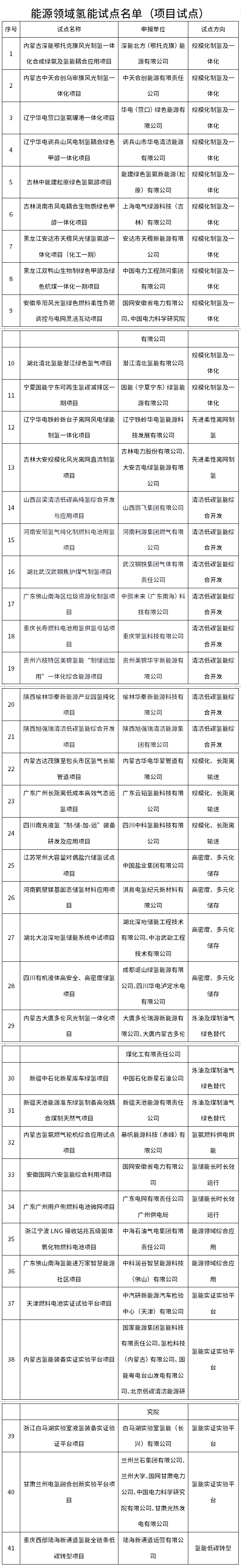 国家能源局综合司关于公示能源领域氢能试点(第一批)的通知