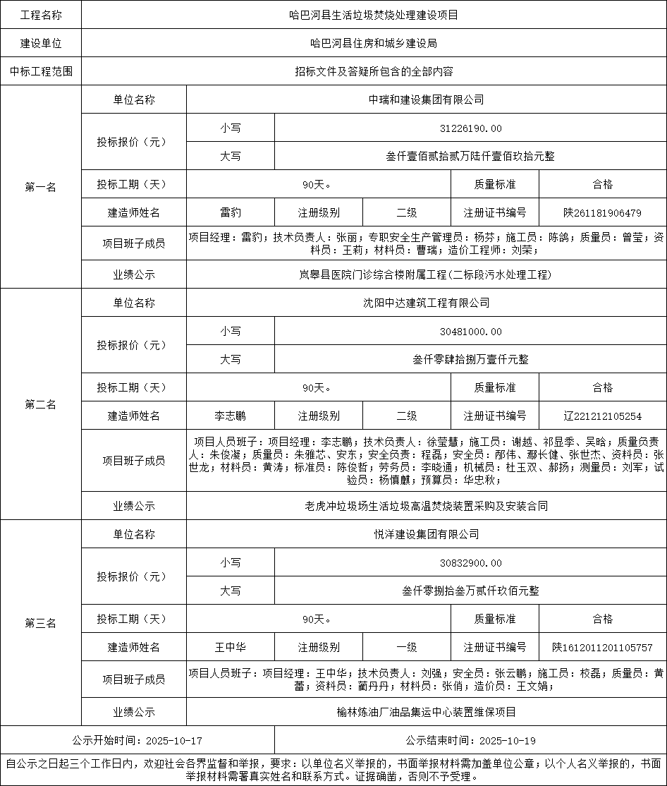 3750万!新疆哈巴河县生活垃圾焚烧处理建设项目中标候选人公示