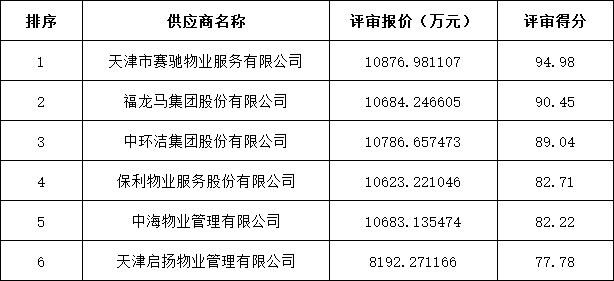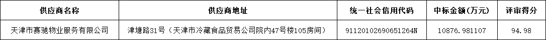 第2包:天津市赛驰物业服务有限公司,中标金额10876.981107万元。