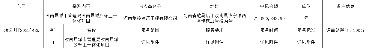 汝南县城市管理局汝南县城乡环卫一体化项目-中标公告