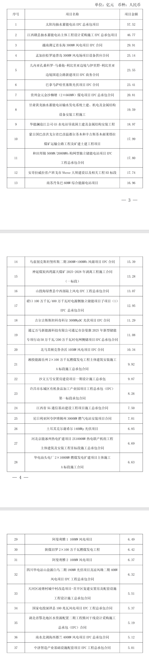 2025年9月,中国电建新签合同金额在人民币5亿元以上的单个项目有: