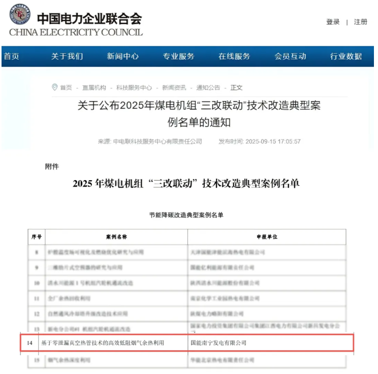 原标题:龙净环保零泄漏真空热管项目成功入选2025年煤电机组“三改联动”典型案例