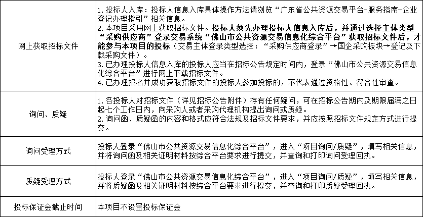 本项目采用电子化采购模式,投标人须按照招标文件要求,登录佛山市公共资源交易信息化综合平台进行网上获取招标文件,并按要求现场递交纸质投标文件。有关操作及要求详见如下: