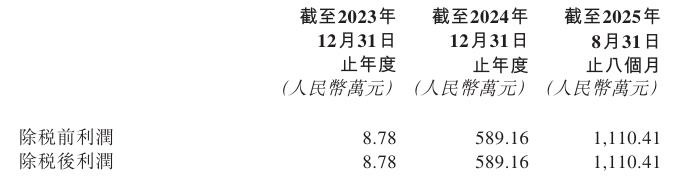 截至2024年12月31日止两个财政年度和截至2025年8月31日止八个月,新能源公司于中国企业会计准则下经审计除税前后利润如下: