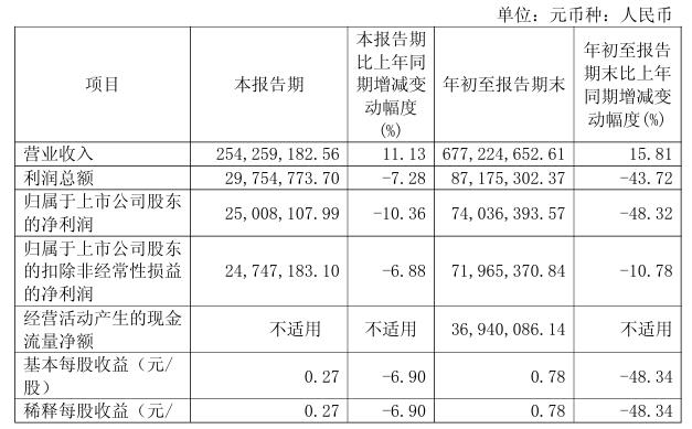 赛恩斯:2025年前三季度净利润为7403.64万元 同比下降48.32%