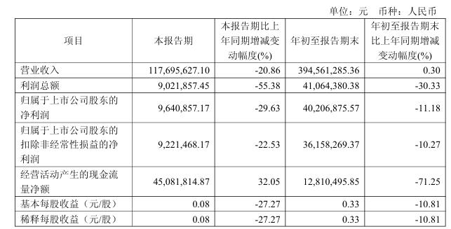 金科环境股份有限公司(简称:金科环境)近日发布《2025年第三季度报告》。2025年前三季度,金科环境实现营收约3.95亿元,同比增加0.3%;归属于上市公司股东的净利润约4021万元,同比减少11.18%;基本每股收益0.33元,同比减少10.81%。