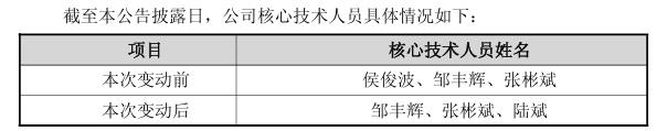 侯俊波先生因个人原因辞职后,也不再担任公司核心技术人员。公司新增陆斌先生为公司核心技术人员。目前公司的技术研发工作均正常进行,调整核心技术人员不会对公司技术研发、核心竞争力和持续经营能力产生实质性影响。