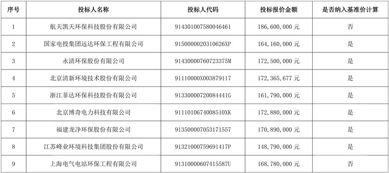 开标记录显示,包含龙净、博奇、清新等9家环保龙头参与投标。