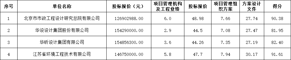 其他:1.中机国际工程设计研究院有限责任公司,方案设计文件得分排名未进前5名。2.中铁十一局集团第五工程有限公司,方案设计文件得分排名未进前5名。3.上海环境卫生工程设计院有限公司,未递交第二阶段电子投标文件。