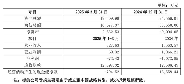 威立雅杭州2024年度、2025年1-3月主要财务数据如下:
