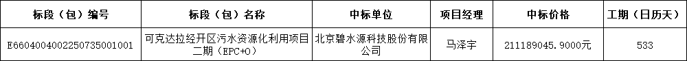 [新疆生产建设兵团·四师][公开招标][设计]可克达拉经开区污水资源化利用项目二期(EPC+O)中标结果公告