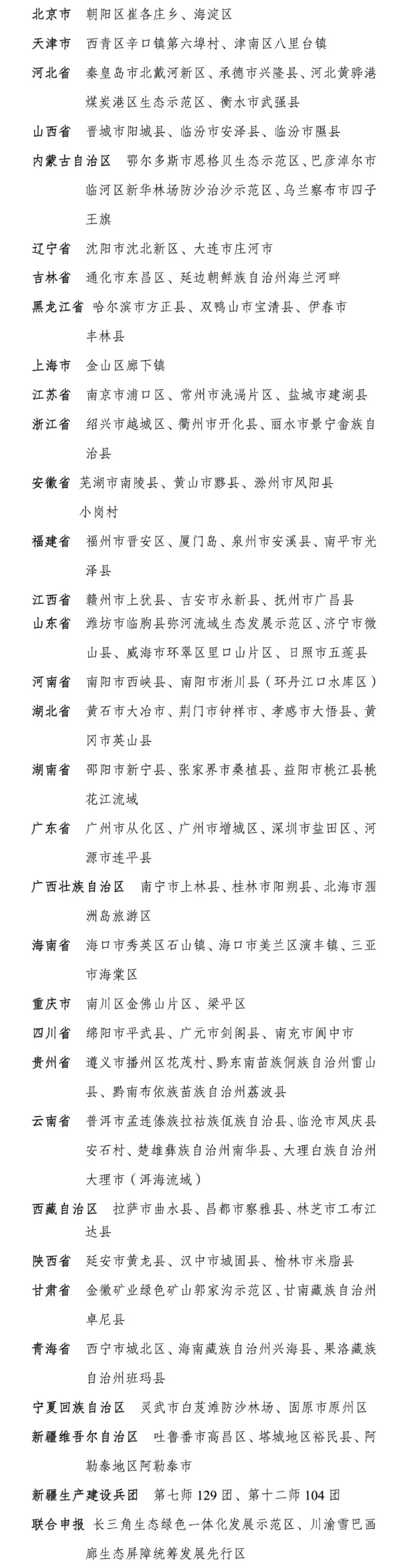 2025年生态文明建设示范区和“绿水青山就是金山银山”实践创新基地拟命名名单公示
