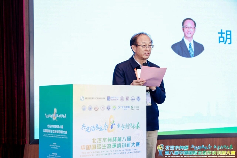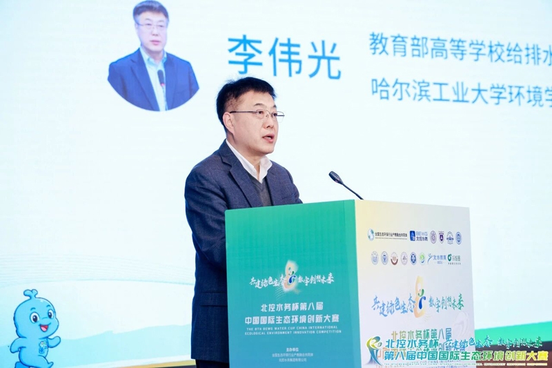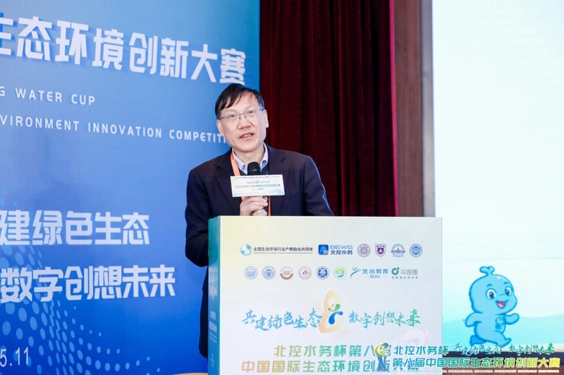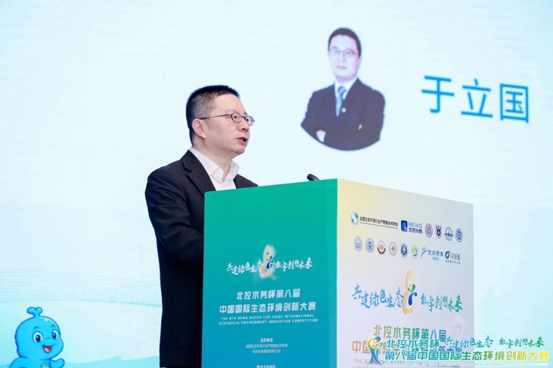 ▲大赛组委会主任、全国生态环保行业产教融合共同体理事长、北控水务集团高级副总裁 于立国致辞