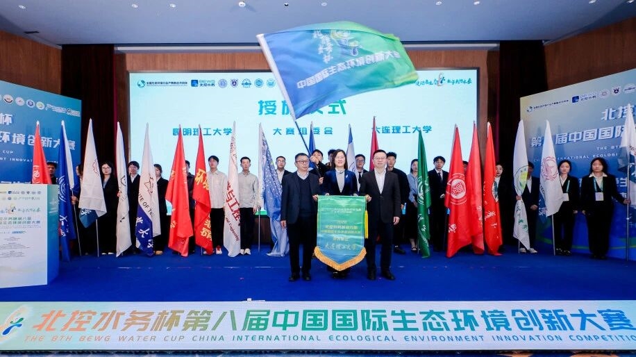 创新大赛赛旗由昆明理工大学经组委会交予大连理工大学。这一传递,不仅是赛旗的交接,更是环保创新使命与责任的延续。