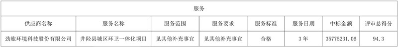 井陉县城区环卫一体化项目公开招标中标公告