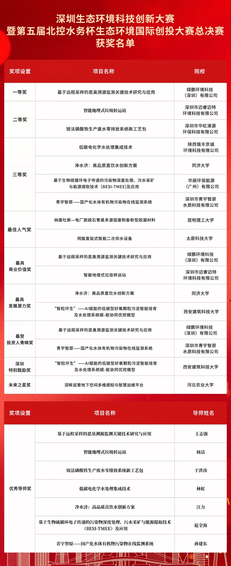 政产学投 携手共创 | 深圳生态环境科技创新大赛暨第五届北控水务杯生态环境国际创投大赛总决赛圆满收官