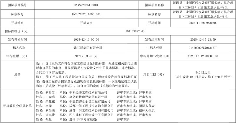 9171.7万!中建三局中标四川汉源工业园区污水处理厂服务能力提升项目总承包