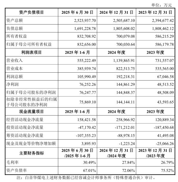 白音华煤电成立于2003年10月25日,先后经历五次增资,注册资本达747,842.67万元。主营业务为煤炭、电解铝及电力产品的生产和销售。公司煤炭产品主要销售给内蒙古、吉林、辽宁等地区燃煤企业,用于火力发电、煤化工、地方供热等方面;电力产品主要销售给国家电网华北分部、国网内蒙古东部电力有限公司等,用于电力及热力销售等;铝产品主要包括铝液和铝锭,其中铝液主要向周边铝加工企业销售,铝锭主要销往东北、华中、华东地区。
