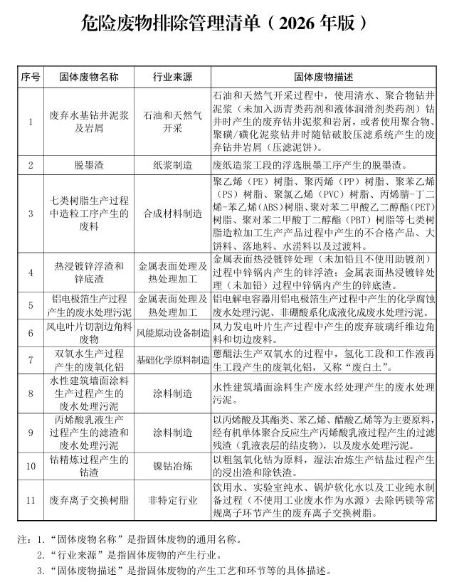 这11类不再属于危险废物!《危险废物排除管理清单(2026年版)》发布
