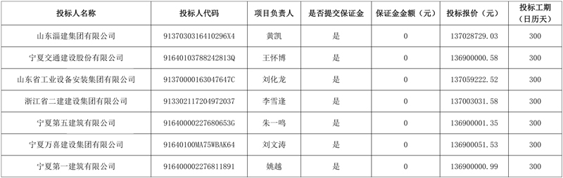 开标记录标题:银川市生活垃圾焚烧发电提升扩建项目(三期一阶段)施工标段