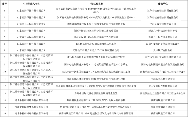 公示名称:电厂末端治理-5万CCPP发电烟气脱硫脱硝除尘提标改造中标候选人公示