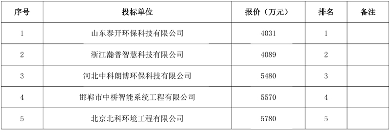 第三中标候选人:河北中科朗博环保科技有限公司,投标价格:5480万元。