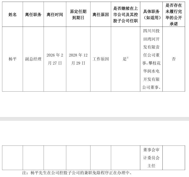 川投能源副总经理离任