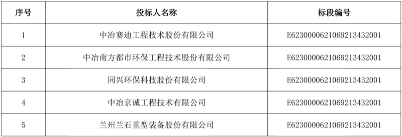 开标记录显示,参与投标的共5家,除三家中标候选人外,还包括中冶京诚工程技术有限公司和兰州兰石重型装备股份有限公司。详情如下: