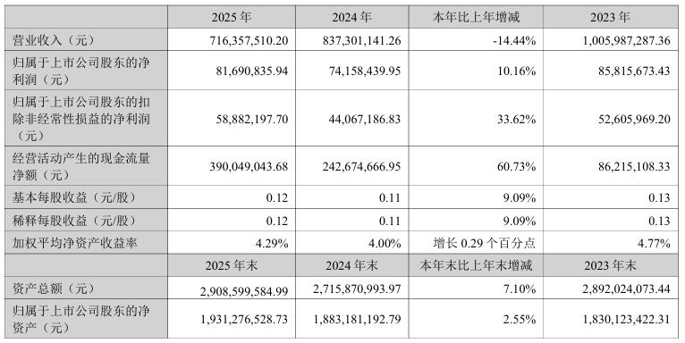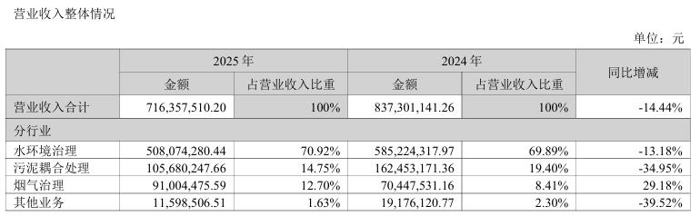 中电环保股份有限公司(简称:中电环保)近日正式发布《2025年年度报告》。报告期内,中电环保实现营业收入约7.16亿元,同比减少14.44%;归属于上市公司股东的净利润约8169万元,同比增加10.16%;基本每股收益0.12元,同比增加9.09%。