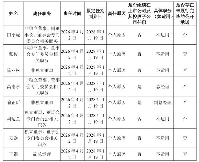 1、因个人原因,非独立董事、副董事长田小虎先生辞任公司非独立董事、副董事长及董事会专门委员会相关职务,辞职后,将不在公司担任任何职务。