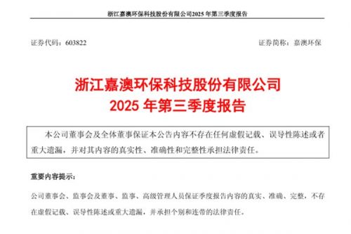 10月18日,浙江嘉澳环保科技股份有限公司(简称:嘉澳环保)发布《2025年第三季度报告》。2025年前三季度,嘉澳环保实现营业总收入30.05亿元,同比增长189.39%;归母净利润亏损2536.59万元,上年同期亏损1.4亿元;扣非净利润亏损2697.93万元,上年同期亏损1.35亿元;经营活动产生的现金流量净额为1.07亿元,同比下降14.95%;报告期内,嘉澳环保基本每股收益为-0.3