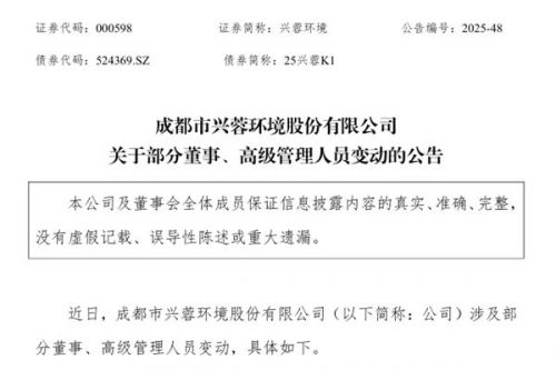 成都市兴蓉环境股份有限公司(简称:兴蓉环境)公告称,鉴于公司独立董事姜玉梅女士连续担任公司独立董事的时间已满6年,经公司于2025年9月5日召开的第十届董事会第二十八次会议审议通过,公司董事会同意提名会计专业人士杨雨澄先生为公司第十届董事会独立董事候选人,任期自股东大会选举通过之日起至本届董事会任期届满之日止。 同时,兴蓉环境董事、董事会秘书刘杰先生因工作调整,辞去公司董事、董事
