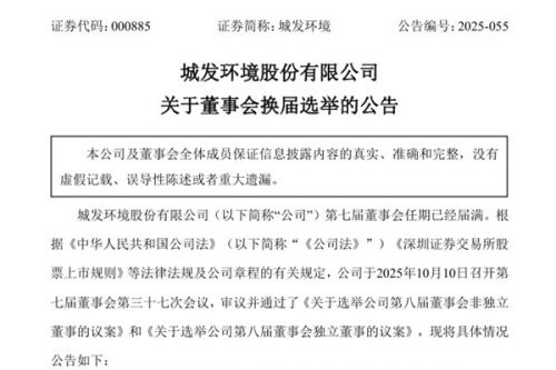 城发环境股份有限公司(简称:城发环境)公告称,公司于2025年10月10日召开第七届董事会第三十七次会议,审议并通过了《关于选举公司第八届董事会非独立董事的议案》和《关于选举公司第八届董事会独立董事的议案》,确认公司第八届董事会由9名董事组成,其中,非独立董事6名(含1名职工代表董事),独立董事3名。 经过城发环境董事会提名委员会资格审查,同意提名黄新民先生、李文强先生、王璞女士