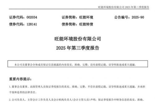 旺能环境股份有限公司(简称:旺能环境)近日发布《2025年第三季度报告》。2025年前三季度,旺能环境实现营业总收入25.55亿元,同比增长5.18%;归母净利润5.51亿元,同比增长7.61%;扣非净利润5.46亿元,同比增长4.43%;经营活动产生的现金流量净额为11.78亿元,同比增长5.61%。 图源:旺能环境公告 旺能环境主要从事生活垃圾处置、餐厨垃圾处置及橡