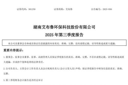 湖南艾布鲁环保科技股份有限公司(简称:艾布鲁)近日发布《2025年第三季度报告》。2025年前三季度,艾布鲁实现营业总收入1.97亿元,同比增长74.38%;净亏损739.73万元,亏损同比减少77.94%;基本每股收益为-0.05元。 图源:艾布鲁公告 截至报告期末,艾布鲁资产总计为16.34亿元,应收账款为1.96亿元;现金流量方面,经营活动产生的现金流量净额为41