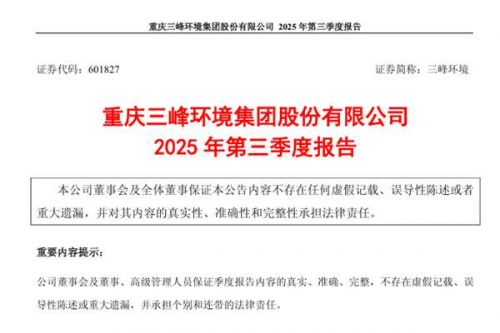 重庆三峰环境集团股份有限公司(简称:三峰环境)近日发布《2025年第三季度报告》。2025年前三季度,三峰环境实现营业收入为41.55亿元,同比下降8.03%;归母净利润为11.04亿元,同比增长9.31%;扣非归母净利润为10.62亿元,同比增长6.44%;基本每股收益0.66元。 图源:三峰环境公告 三峰环境主营业务涉及垃圾焚烧发电项目投资运营、EPC建造以及垃圾焚