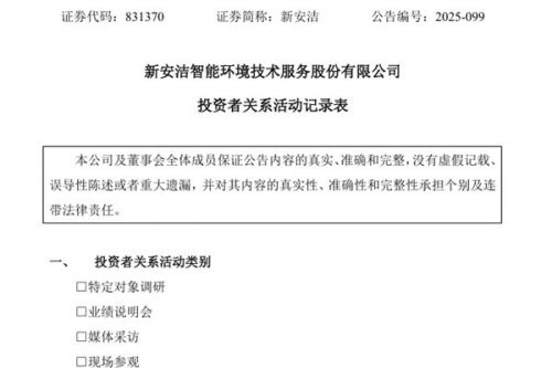9月25日,新安洁智能环境技术服务股份有限公司(简称:新安洁)进行投资者关系活动,内容为重庆辖区上市公司2025年投资者网上集体接待日暨半年度业绩说明会,接待人员为副总裁兼财务负责人刘灵、董事会秘书蔺志梅、证券事务代表杨佚帆。 新安洁表示,目前,公司的战略转型方向明确,核心是从传统环卫服务商向“智慧人居环境投资运营商”升级。巩固传统环卫基本盘同时,业务形态