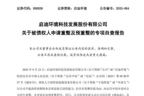 近日,启迪环境科技发展股份有限公司(简称:启迪环境)对是否涉及被深圳证券交易所强制退市行为的情况、控股股东、实际控制人及其他关联方资金占用、对外担保、承诺履行情况等事项进行了全面自查,具体情况如下: 1.截至本报告披露日,公司不存在涉及国家安全、公共安全、生态安全、生产安全和公众健康安全等领域的重大违法行为导致股票可能被终止上市的情形。 2.截至本报告披露日,公司不