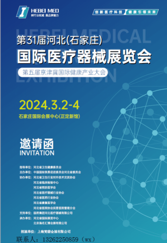 时间:2024.3.2-4 地址:石家庄国际会展中心(正定新馆)指导单位: 河北省卫生健康委员会 主办单位:中国国际贸易促进委员会河北省委员会 协办单位:河北省卫生行业对外技术交流协会、河北省临床检验中心、河北省预防医学会、河北省医疗器械行业协会、河北省医药行业协会、河北省康复医学会、河北省医院协会民营医院管理分会 支持单位:国药集团河北